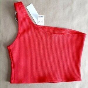 TOPSHOP | One Shoulder Crop Top Textured Ribbed Bright Red Sz 6