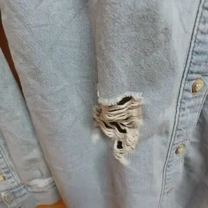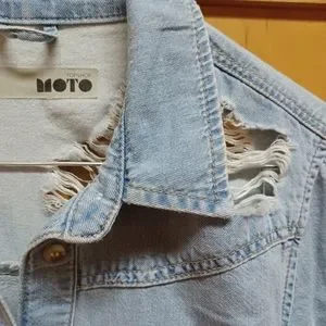 This is the ultimate in edgy. It is a really nice button down with peak a boo spots strategically placed. It is Topshop Moto. Size 4.
