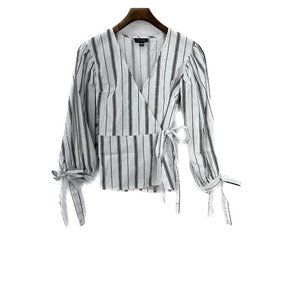 TOPSHOP Stripe Wrap Blouse White Size 2