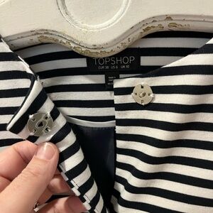 TOPSHOP Striped Peplum Blazer – Navy & White – Size 6 (US)
