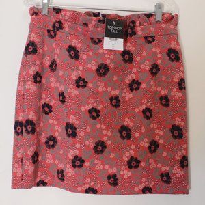 TOPSHOP TALL Dark Coral Red Floral Skirt NWT 8