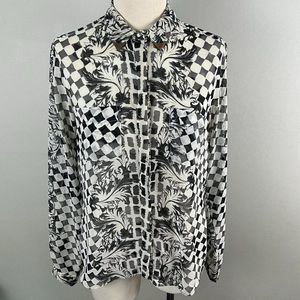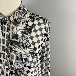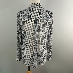TOPSHOP TALL Ivory Black Sheer Button Down Blouse (4)