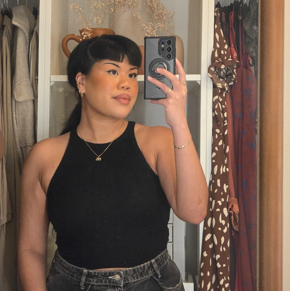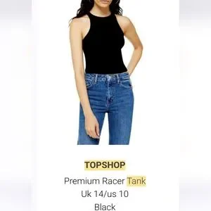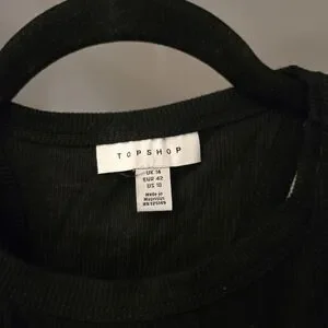 TOPSHOP Racer ribbed viscose tank in Black. Size US 10. Fits like a M/L. Note: Slight deodorant stains at the pit. See last photo.
