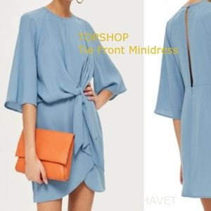 TOPSHOP Tie Front Minidress Light Blue Size 2