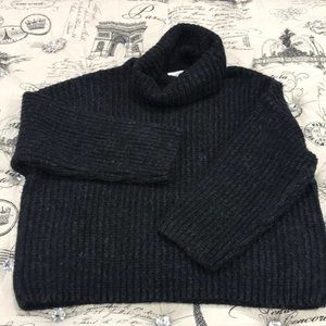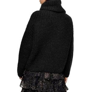 A slouchy turtleneck adds contemporary-chic vibes to this textured rib-knit sweater.