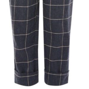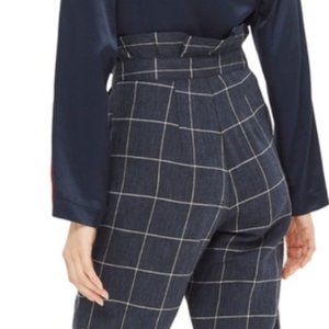 Effortlessly chic, these high-rise pants boast a frilly ruffled waist, polished plaid print and cuffed cropped hems.
