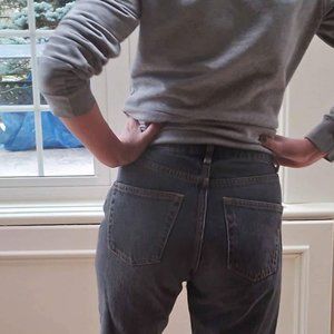TOPSHOP women's high quality faded black wash jeans from Nordstrom, in excellent condition. High waisted with a comfortable and curvy "mom" fit, these jeans are 100% cotton and washing machine safe. Size is W26/66cm to fit L30/76cm.