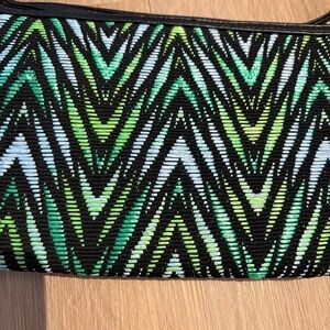 • Colour: Black with green, teal, white, and blue chevron pattern