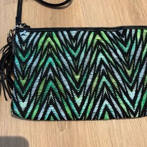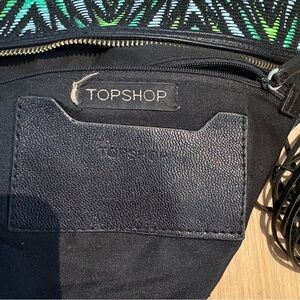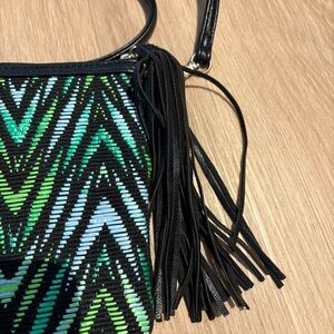 TOPSHOP Woven Chevron Raffia Bag – Green/Blue/Black – Faux Leather Tassel