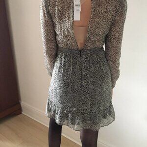 TOPSHOP blackgrey sheer LEOPARD mini DRESS 6 pleated with back cut outs