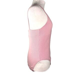 Topshop t-bar strap ribbed bodysuit pink spaghetti straps gusset closure size 8
