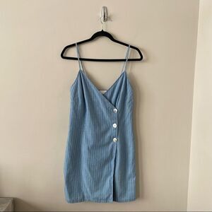 This super cute mini dress is a summer dream!! Beautiful Pearl finish buttons and the pinstripe detail makes it an easy dress to wear with fresh white converse!