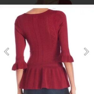 TORN BY RONNY KOBO | knit peplum top sweater burgundy red sz M
