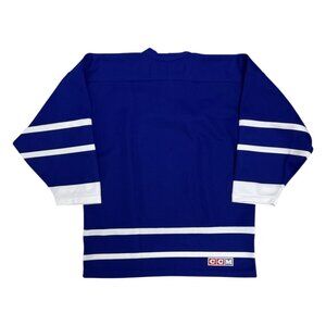 Show your support for the Toronto Maple Leafs with this vintage Y2K blue CCM hockey jersey. A must-have for any young fan, the jersey comes in a size large, fitting comfortably with a regular size type. It's designed to replicate the on-ice look of your favourite NHL team, complete with the official team colors and logo.
