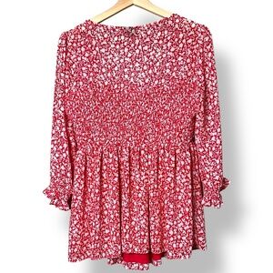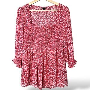 TORRID Babydoll Chiffon Smocked Top Floral Ditsy Print 3/4 Sleeves Partly Lined
