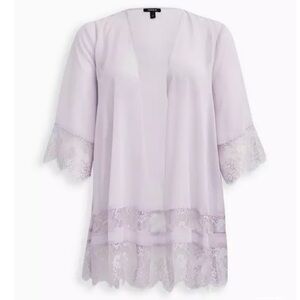 TORRID Chiffon Kimono with Lace Trim in Iris Purple Sz 1X Plus NWT Boho Festival