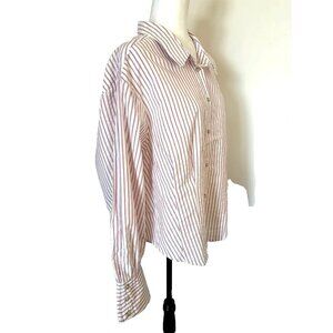 TORRID Cotton Crop Button Up Shirt Size 3X Dusty Rose Striped Smocked Back