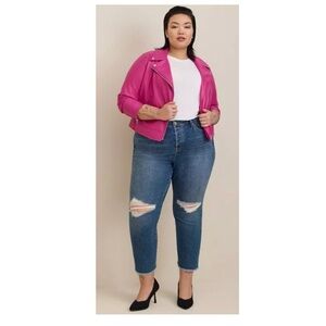 TORRID Faux Leather Moto Jacket Fuschia Pink 5X NWT Sz 28 Plus Y2K Glam Rock