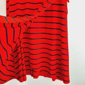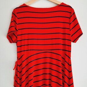 TORRID \ Faux Wrap Knee Length Midi Dress Stretch Jersey Knit Stripe Red Blue M