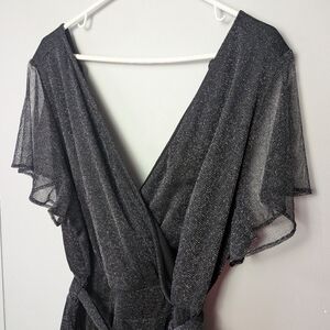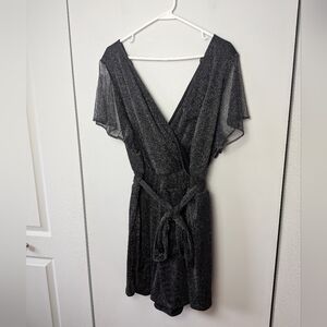 TORRID Glitter Lurex Flutter Sleeve Surplice Romper Size 2 = 2X Black