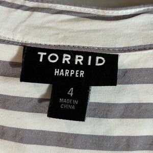 TORRID HARPER Sz 4 (vanity) Blouse Tab Sleeves Stripes Patch Pockets V-Neck. Lovely and flowy. Slinky. Tunic length. Oversized to keep you fresh and cool. 100% modal.