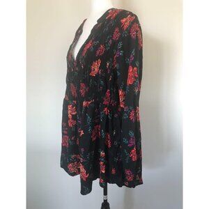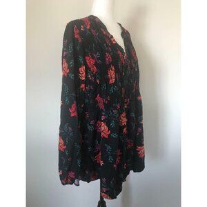 TORRID Long Sleeve Tunic Top Size 1 Button Up Shirred Bodice Black Bright Floral