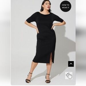 TORRID Midi Studio Cupro boatneck Bodycon Dress, black size 2x or 3x