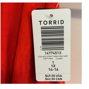 TORRID Mini Super Soft Wrap Skirt Red Sz 1X Plus Y2K Casual Everyday Comfort