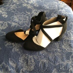 TORRID NWT Size 11W Black Faux Suede Strapy Heels