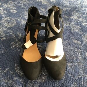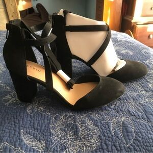 TORRID NWT Size 11W Black Faux Suede Strapy Heels
