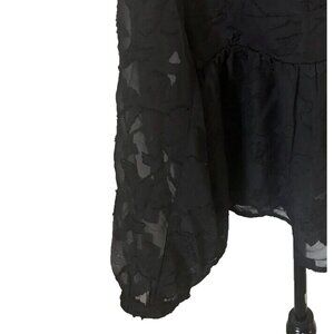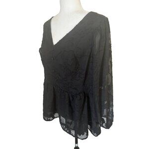 TORRID Peplum Chiffon Clip Floral Blouson Sleeve Top Size 1X 14-16 Black NWT