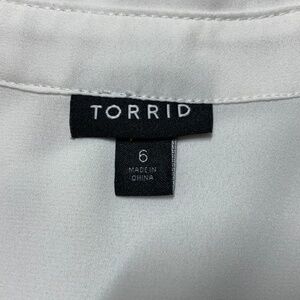 Torrid Sz 6 = US Sz 6X. In excellent pre owned condition. Chest pockets; roll tab sleeves. Front button closure. Photos are important so please check all for condition, detail and measurements. All clothing items I list come to you clean and to the best of my knowledge free of rips, tears and stains unless disclosed in the listing. From a smoke free, pet free home.
