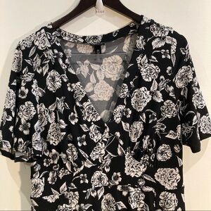 TORRID Sz 00 (Sz 10 equiv.) A-Line Floral V-Neck Bat Wing Sleeves Cinched Waist