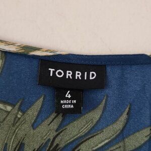 TORRID | Teal Tropical Floral Chiffon Babydoll Tunic Hi-Low Sheer Blouse Sz 4X