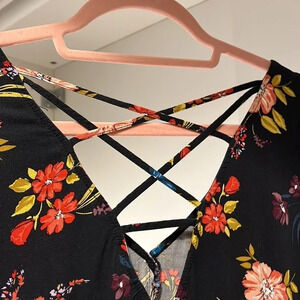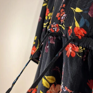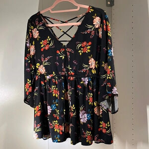 TORRID Top women plus 0 floral on black elastic empire waist wide sleeves