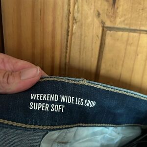 TORRID Weekend Wide Leg Crop Super Soft, Stretch Material, Pockets (Front and Back), Elastic Waistband with Drawstring, Medium Beach Wash, Size 1X. Rise is 11”, Inseam is 23”.