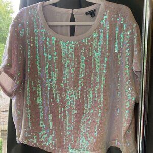 TORRID White Iridescent Sequins Crop Tee SIZE 0