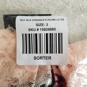 New with tags, in original packaging, lace trim boyshort floral underwear.