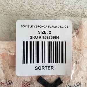 New with tags, in original packaging, lace trim boyshort floral underwear.