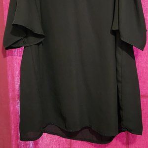 Pre-owned Torrid plus size women's blouse in sleek black. Crafted to perfection, this blouse exudes elegance with its peekaboo shoulder design and delicate lace accents on the shoulders and upper back.