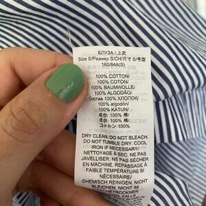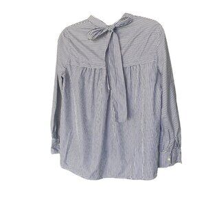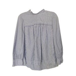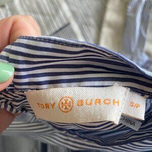 TORY BURCH 100% Cotton Poplin Blue and White Striped Long Sleeves Blouse Sz S