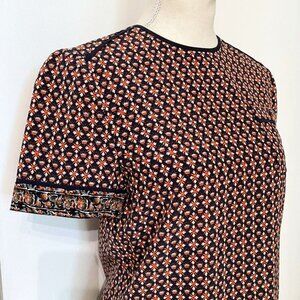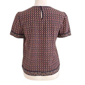 TORY BURCH 100% SILK SHORT SLEEVE BOXY TOP IN ORANGE BLUE FLORAL GEO PATTERN - 2