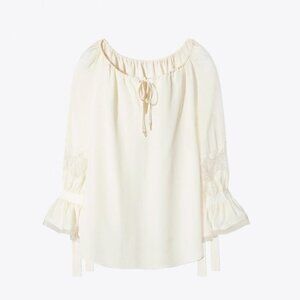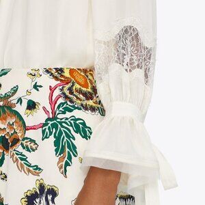 TORY BURCH 100% SILK WILLOW BLOUSE Ivory Top Lace