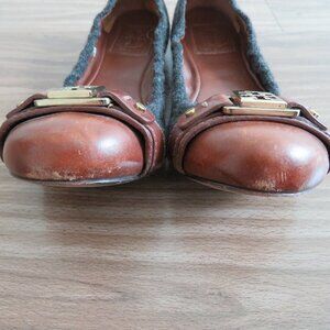 TORY BURCH Ambrose Sienna Flannel Wool Cap Toe Flats Shoes - Women's Size US 7.5