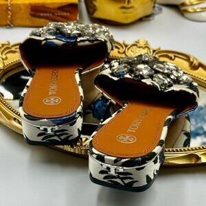 🆕 TORY BURCH 🧿 BNWOB Martine Crystal Jacquard Slide, Sz 7