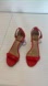 TORY BURCH CECILE sandals in City Pepper Red Patent Leather, with block Heels and ankle straps, gold tone accents, size 8.5M. The colour is an orange red colour