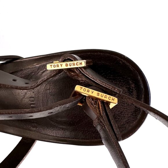 TORY BURCH Francesca Brown Leather Gladiator Sandal - Size 8M