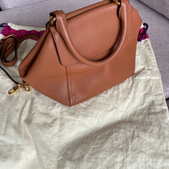 Never used Tory Burch Half Moon satchel. Comes with a shoulder strap and the original dust bag.