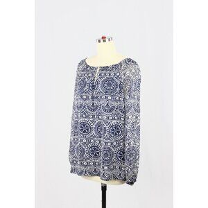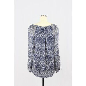 TORY BURCH Lisa Navy Blue Print Silk Georgette Tunic Blouse Top, Size 6
