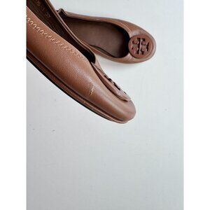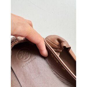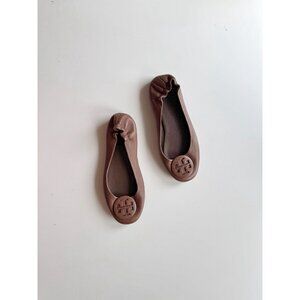 TORY BURCH Minnie Brown Leather Brown Medallion Travel Ballet Flats, Size 37